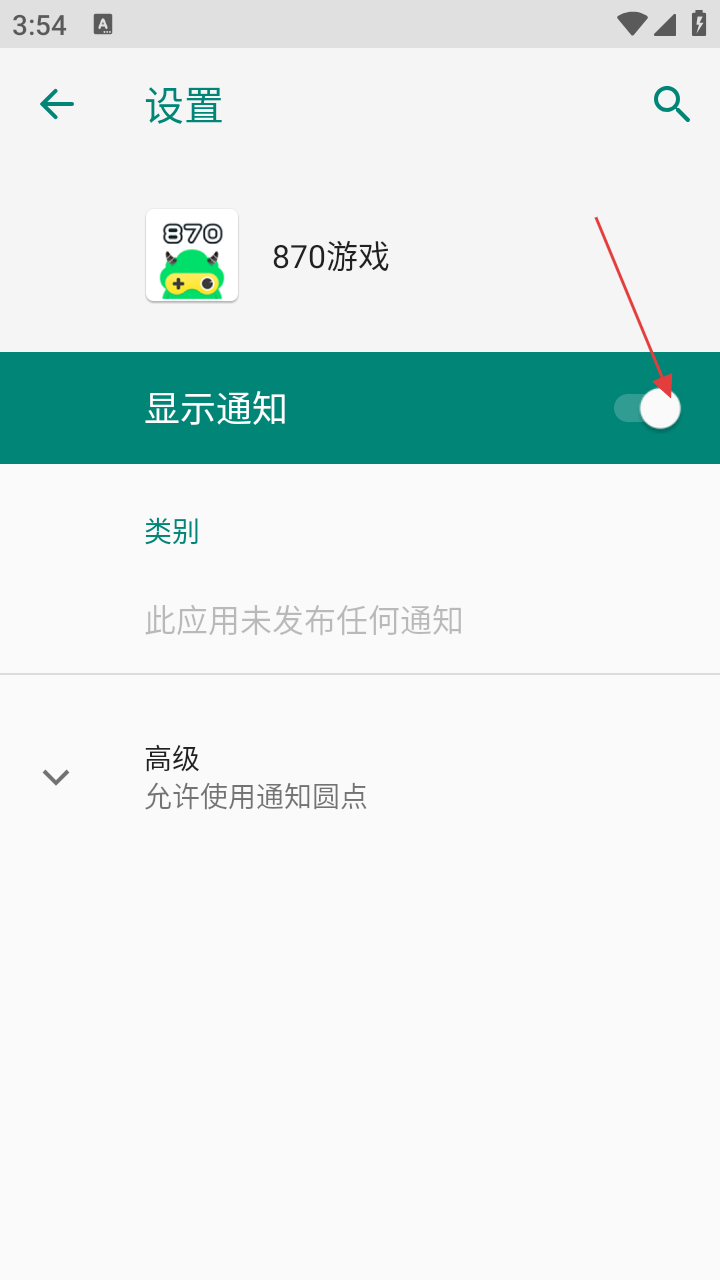 4、在通知栏相关设置页面,若要显示通知,点击【显示通知】开关,开启该功能。