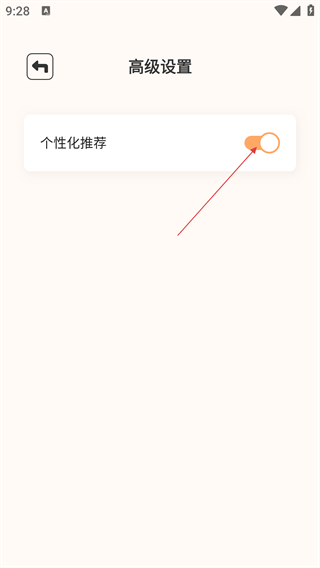 4、在高级设置页面可开启或关闭【个性化推荐】,调整阅读推荐设置。