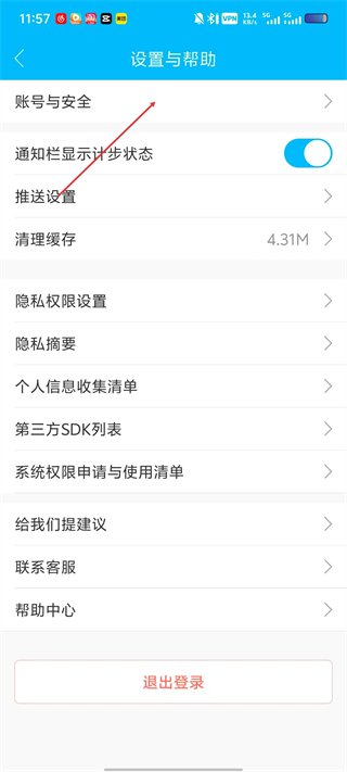 3、在设置与帮助界面中,选择“账号与安全”选项,进入账号安全管理页面。