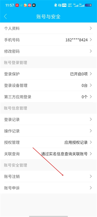 4、在账号与安全页面,点击“账号注销”选项,按提示完成身份验证及注销确认流程,即可完成账号注销操作。