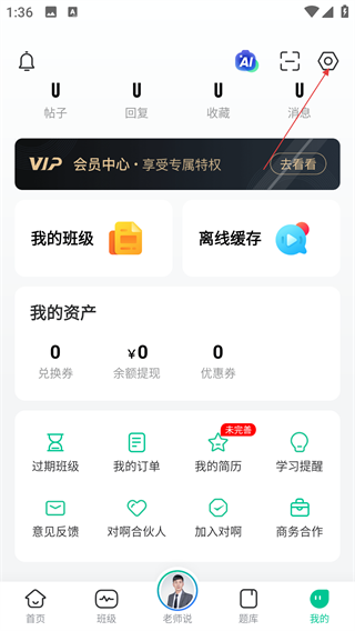 1、进入对啊网课堂后,点击右下角【我的】,进入个人中心页。