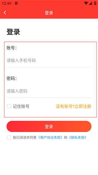 4、在登录页,输入账号、密码,勾选《用户协议条款》和《隐私条款》后,点击【登录】完成账号验证,即可继续购买课程。
