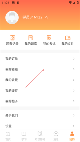 3、点击底部【我的】进入个人中心,选择【我的错题】选项,进入错题管理界面。