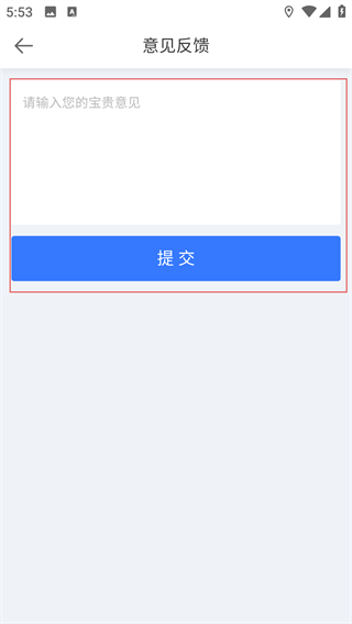 4、在意见反馈页面,输入内容后点击【提交】,将反馈信息提交给平台,助力服务优化。