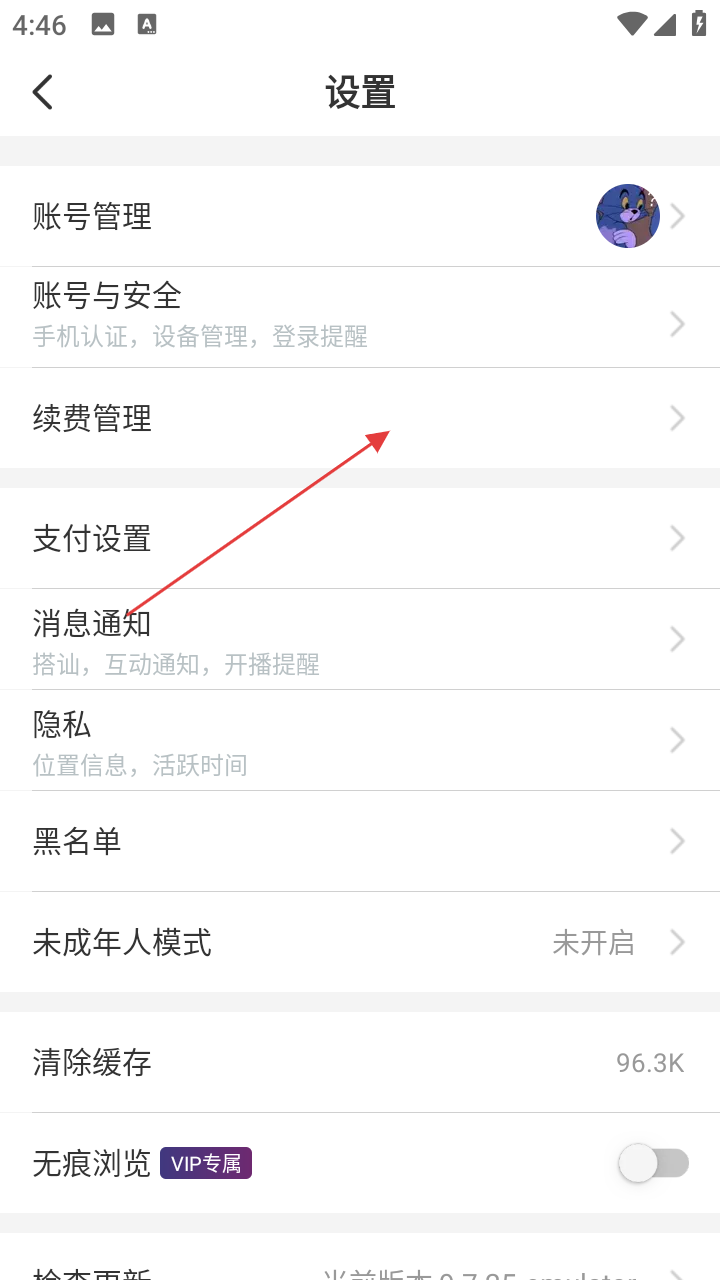 3、在设置页面,若要管理续费相关事项,点击【续费管理】选项,进入续费管理页面。