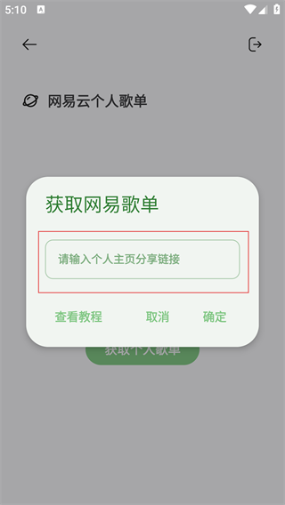 3、在获取网易歌单窗口中,输入个人主页分享链接。