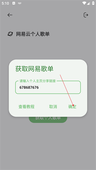 4、输入完成后,点击【确定】按钮,即可获取网易云个人歌单。