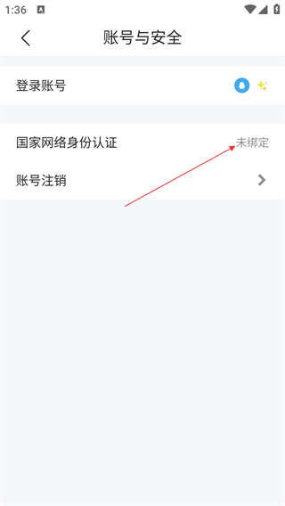 3、在设置界面,点击【账号与安全】,进入账号与安全页面,可进行国家网络身份认证等操作。