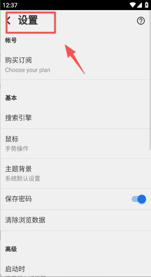 4、进入设置选搜索引擎与主题,保存密码并清除浏览数据。