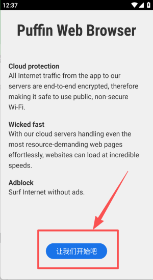 1、点击“让我们开始吧”,先开启云端加密保护再上网。