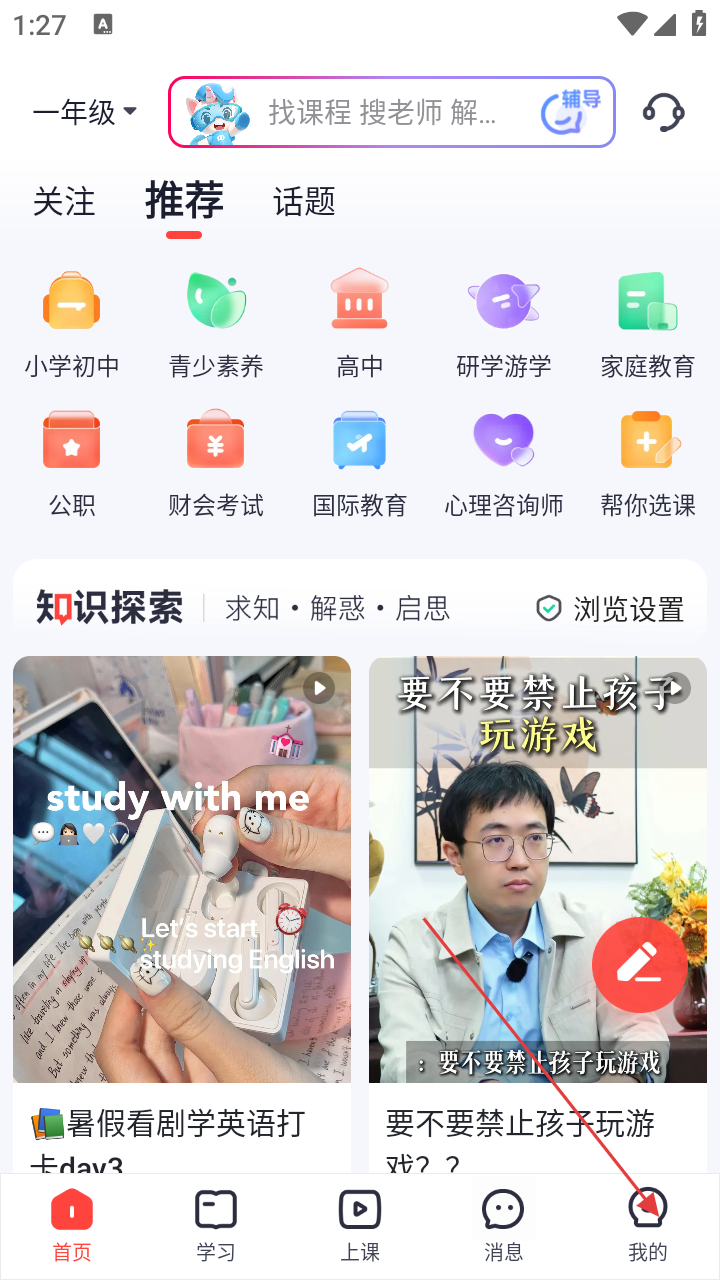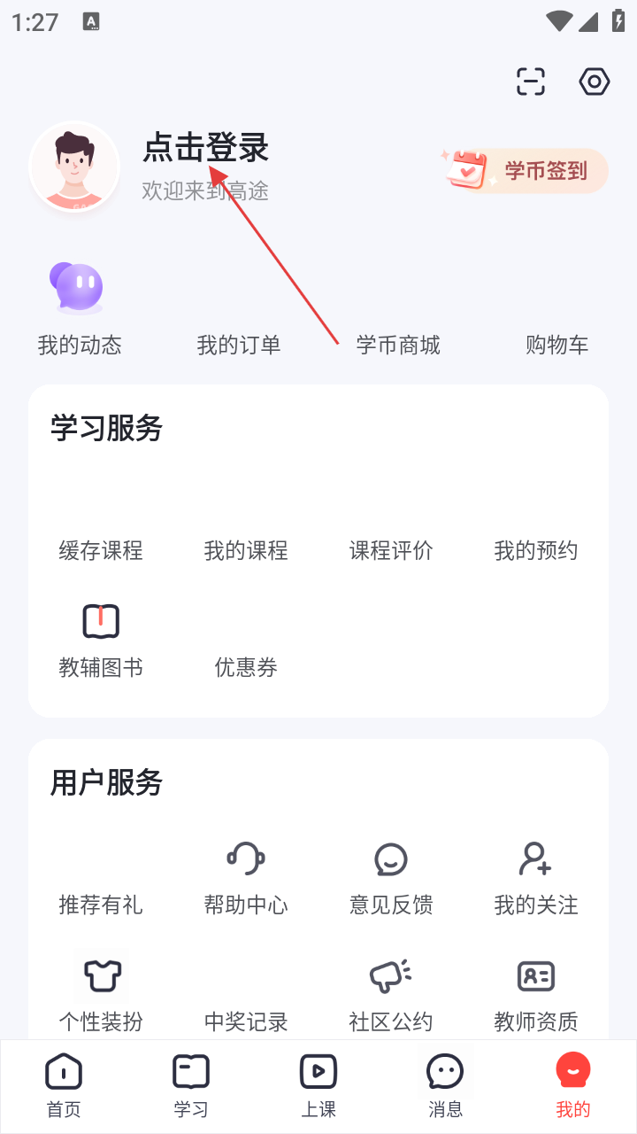 1、在首页点击右下角【我的】选项,进入个人页面,可查看学习服务等相关功能。