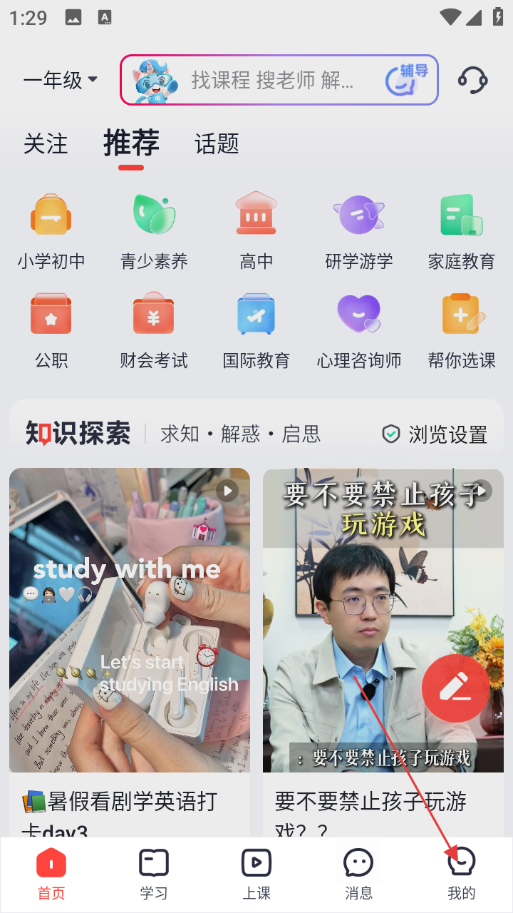 1、在首页点击右下角【我的】选项,进入个人页面,可查看学习服务等相关功能。