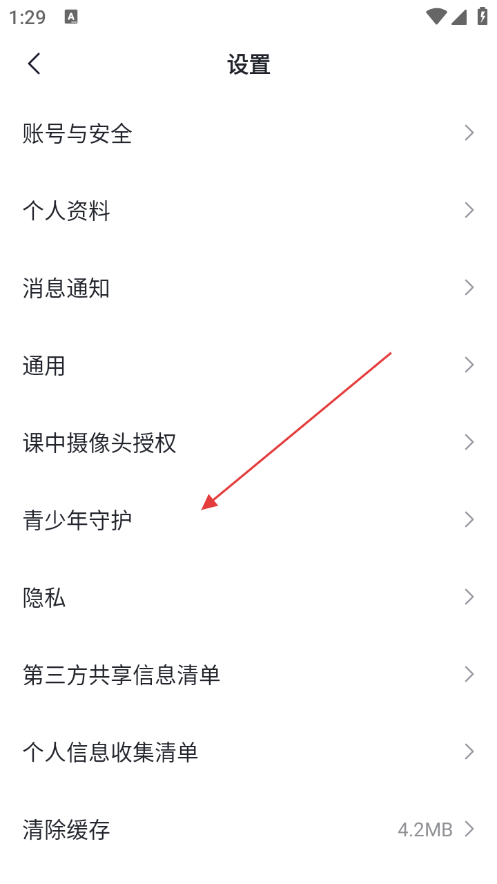 3、在设置界面,找到并点击【青少年守护】选项,进入青少年守护设置页面。