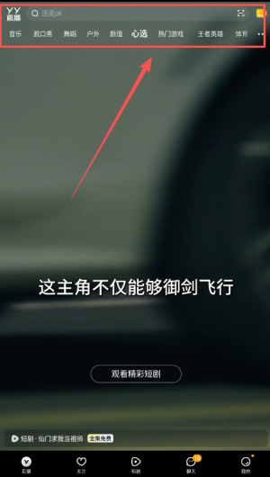 二、进入主界面后可以根据个人兴趣在推荐音乐游戏等不同频道间浏览选择心动直播间点击即可进入观看。