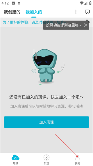 1、在APP的班课页面,点击底部【我的】,进入个人中心界面。