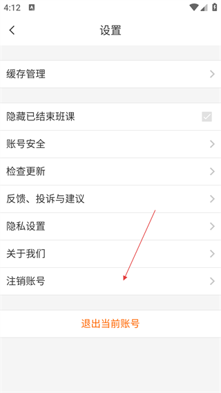 3、在设置页面,点击【注销账号】,进入注销确认界面。