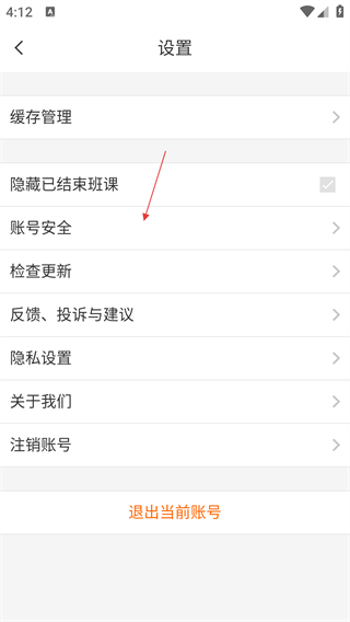 3、在设置页面,点击【账号安全】,进入账号安全管理界面。