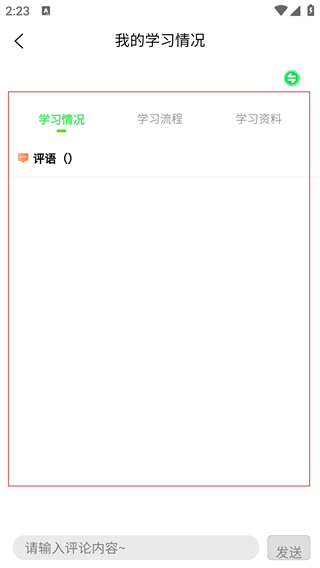 4、在该页面可查看学习情况、学习流程、学习资料等内容,还能输入评论内容提交。