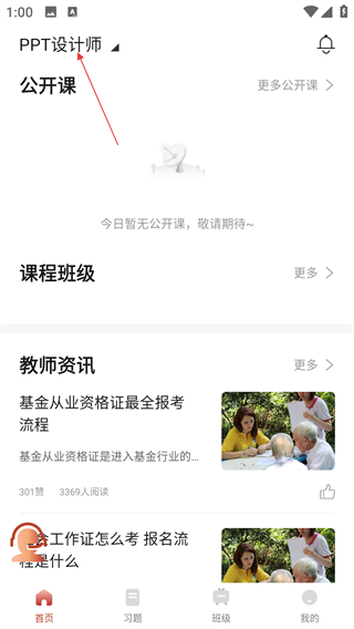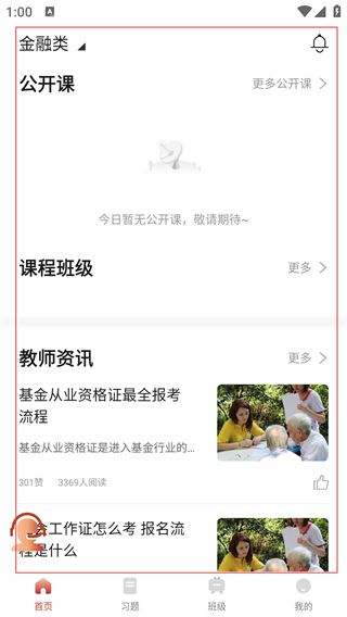 4、完成选择后,首页内容将更新为所选目标对应的课程、资讯等资源。
