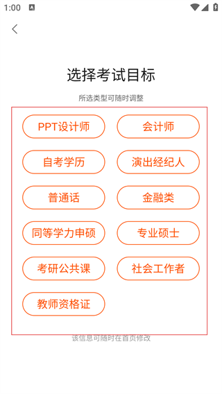 1、在首页点击顶部当前考试目标,触发目标更换弹窗。