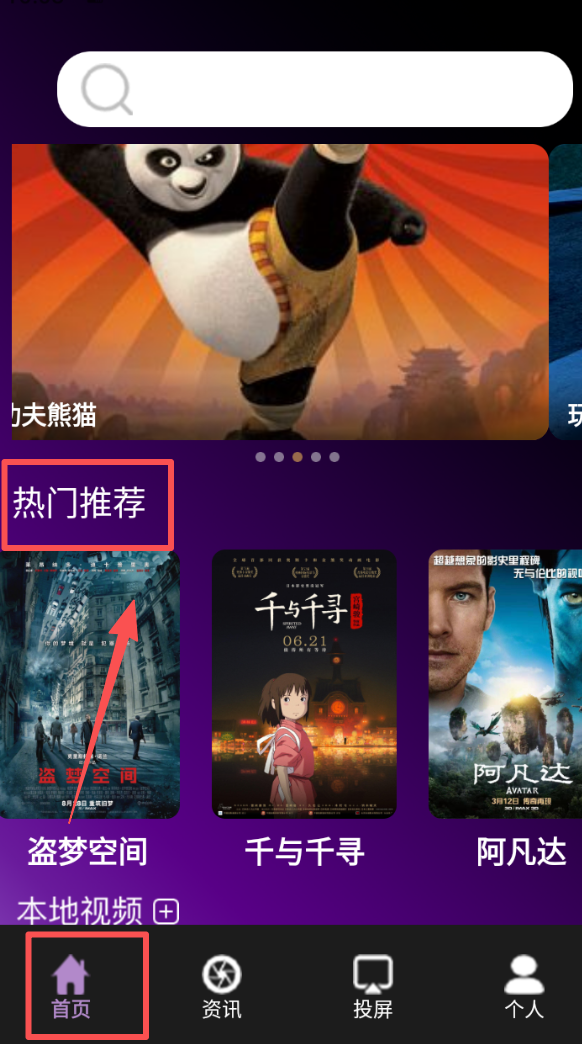 1、在软件底部导航栏,点击 “首页”,可进入首页浏览热门推荐的影视内容。