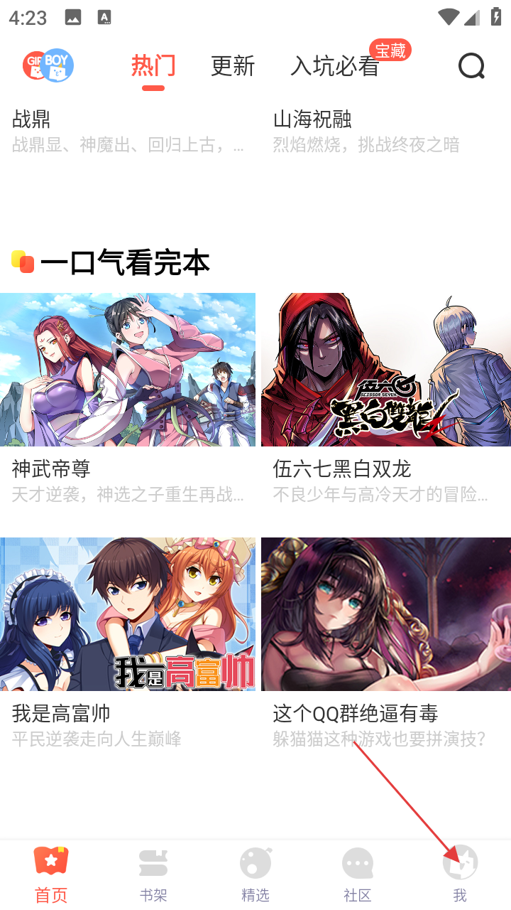 1、在漫漫漫画首页,点击右下角【我】,进入个人相关页面。