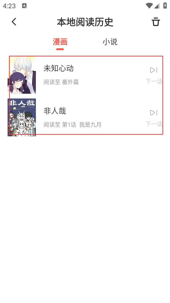 3、在阅读历史页面,可查看之前阅读过的漫画,如【非人哉】。