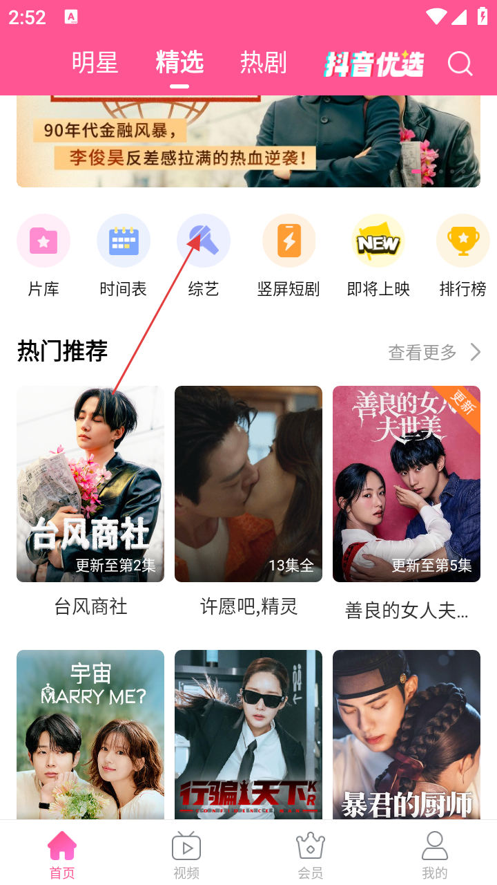 1、在首页点击【综艺】选项,进入综艺页面,可浏览各类综艺内容。