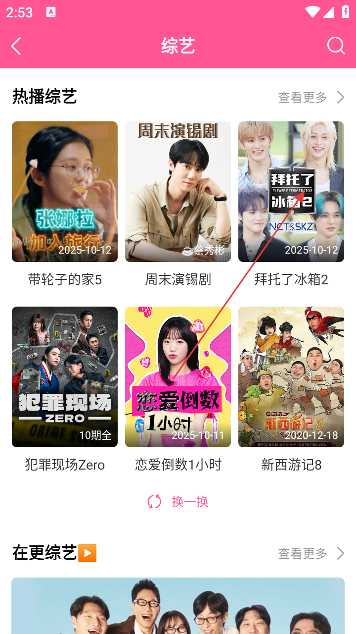 2、在综艺页面,找到并点击想看的综艺,如【拜托了冰箱2】,进入该综艺播放页面。