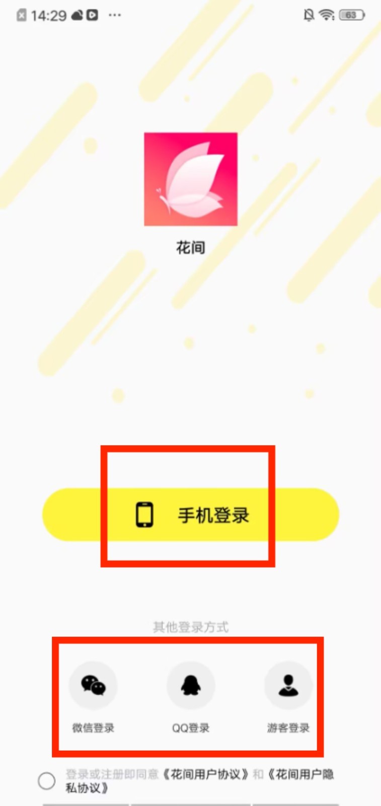 1、打开软件后,可选择手机登录,也能通过微信、QQ 或游客方式登录,登录前需同意相关用户协议。
