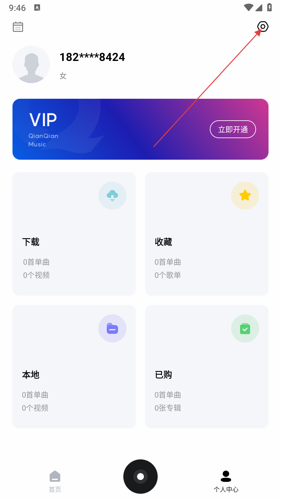 1、在首页点击【个人中心】,进入个人中心页面,可看到设置入口。