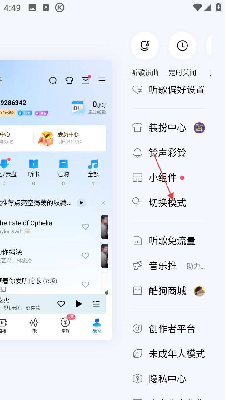 酷狗音乐怎么切换简易模式