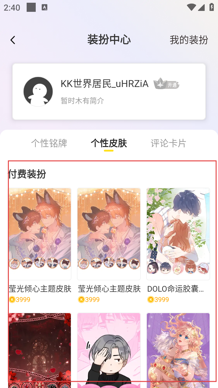 3、进入装扮中心后,可看到【付费装扮】区域,里面有多种主题皮肤可选。