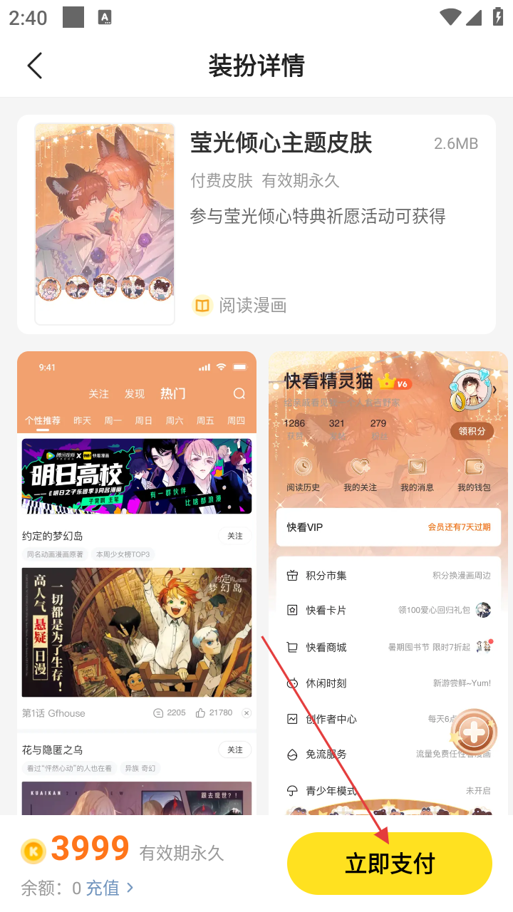 4、选择心仪的主题皮肤后,进入装扮详情页,点击【立即支付】即可获取该皮肤并更换。