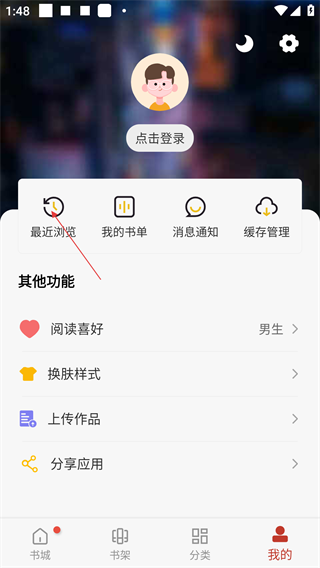 3、在个人中心页面,点击【最近浏览】选项,可查看之前浏览过的漫画、小说等内容记录。