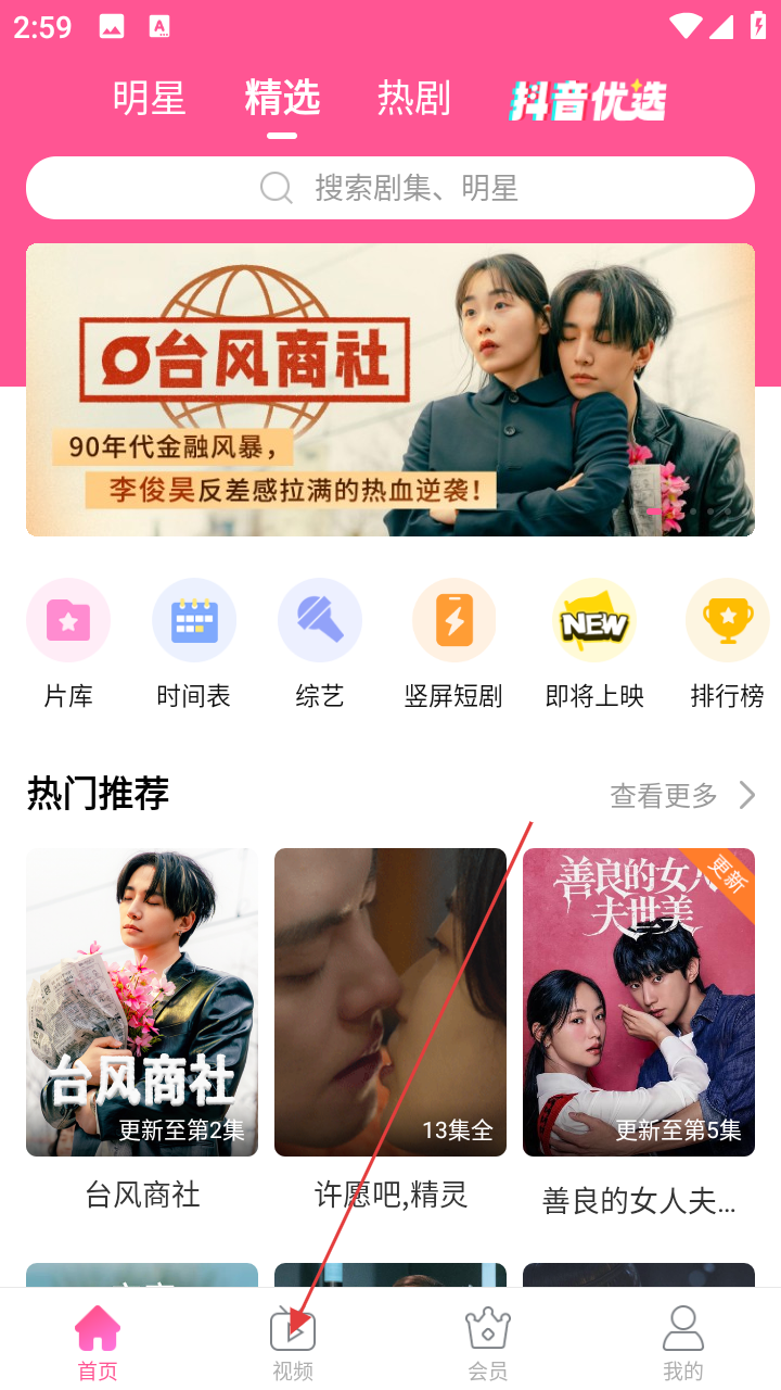1、在首页点击底部【视频】选项,进入视频页面,可浏览各类视频内容。