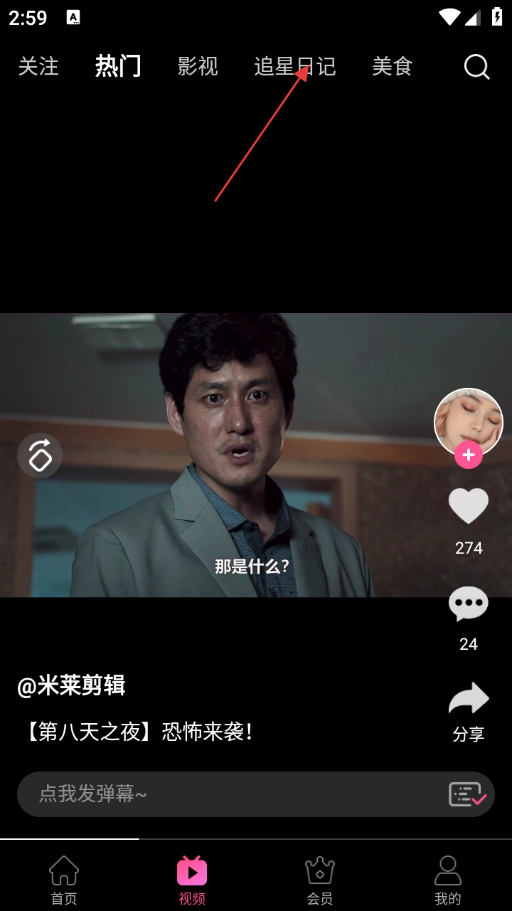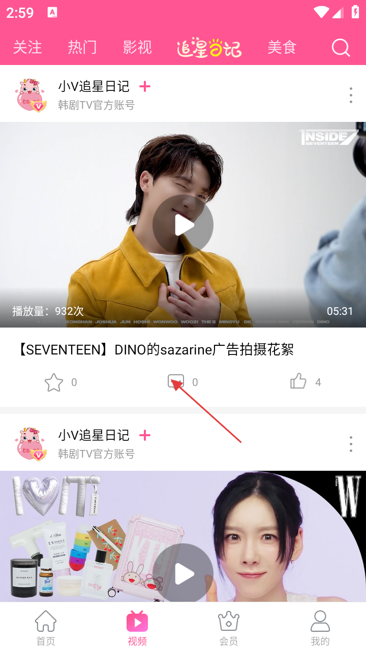 2、在视频页面,点击顶部【追星日记】分类,进入追星日记视频列表。