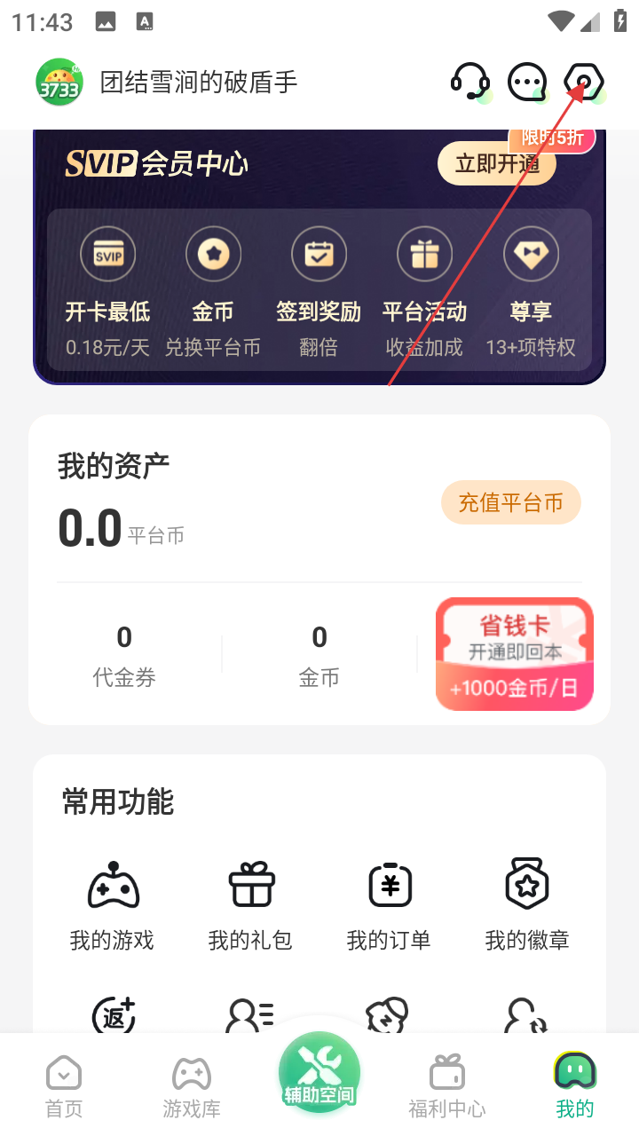 1、在3733游戏盒首页,点击底部【我的】,进入个人页面,可查看资产、会员等相关内容。