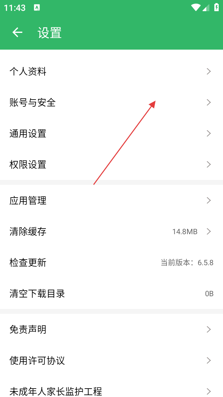 3、在设置页面,找到【账号与安全】选项并点击,进入账号安全设置界面。