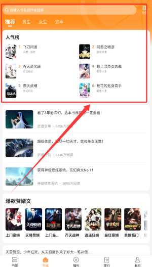 2、在主界面中,您可以浏览热门推荐及排行榜,发现最新和最受欢迎的小说,轻松找到您感兴趣的系列。