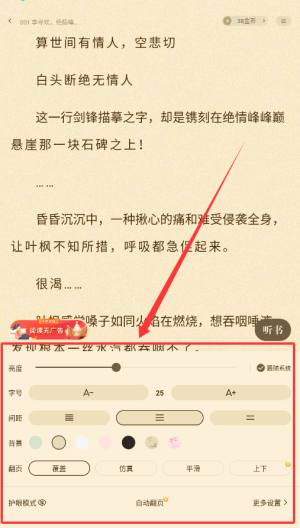4、阅读设置选项允许用户自由调整界面背景和字体样式,打造最符合个人喜好的阅读环境,让您畅享无阻阅读乐趣。