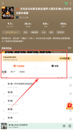 4. 听书体验:点击书籍即可进入听书页面,享受舒适的听觉体验。