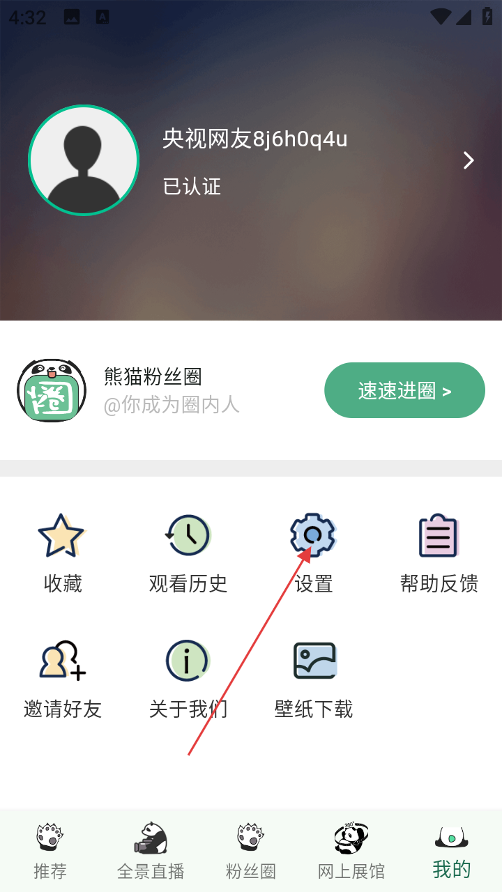 1、在熊猫频道APP推荐页面,点击底部【我的】选项,进入个人中心页面。