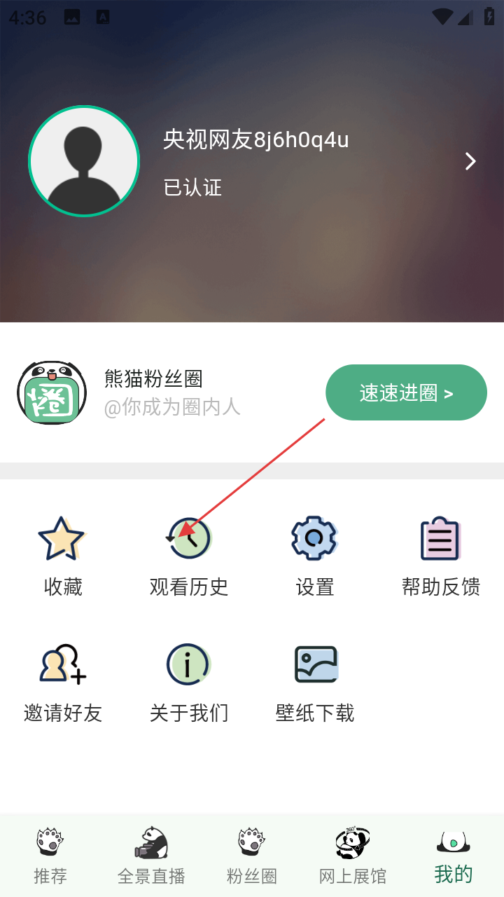 3、在观看历史页面,可看到之前观看过的熊猫相关内容记录,点击对应的内容条目。