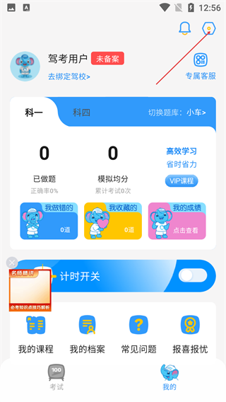 1、在驾考APP首页点击底部【我的】,进入个人中心页面。