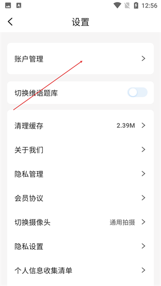 3、在设置页点击【账户管理】选项,进入账户管理界面。