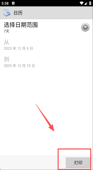 3、若打印日历先设7天范围,调好起止日期后点打印即刻输出。