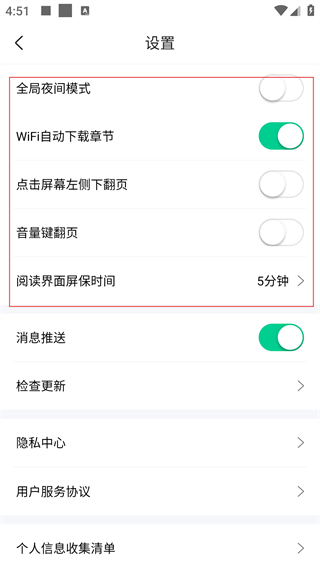 4. 支持多种阅读设置,如字体大小、背景色等。