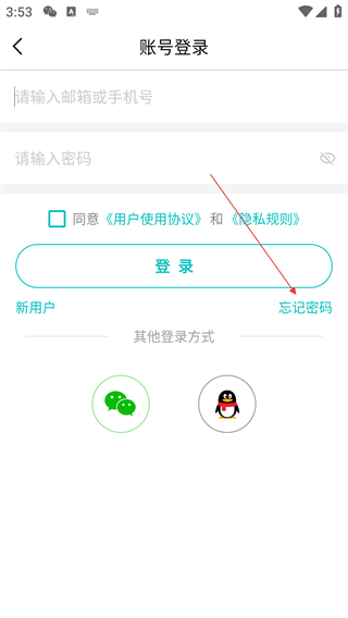 3、在账号登录页面,点击【忘记密码】选项,进入忘记密码页面。