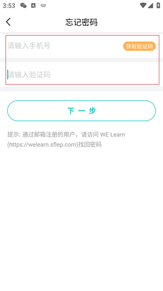 4、在忘记密码页面,输入已绑定的手机号码,点击【获取验证码】并填写收到的手机验证码,完成后点击【下一步】,即可完成密码找回。